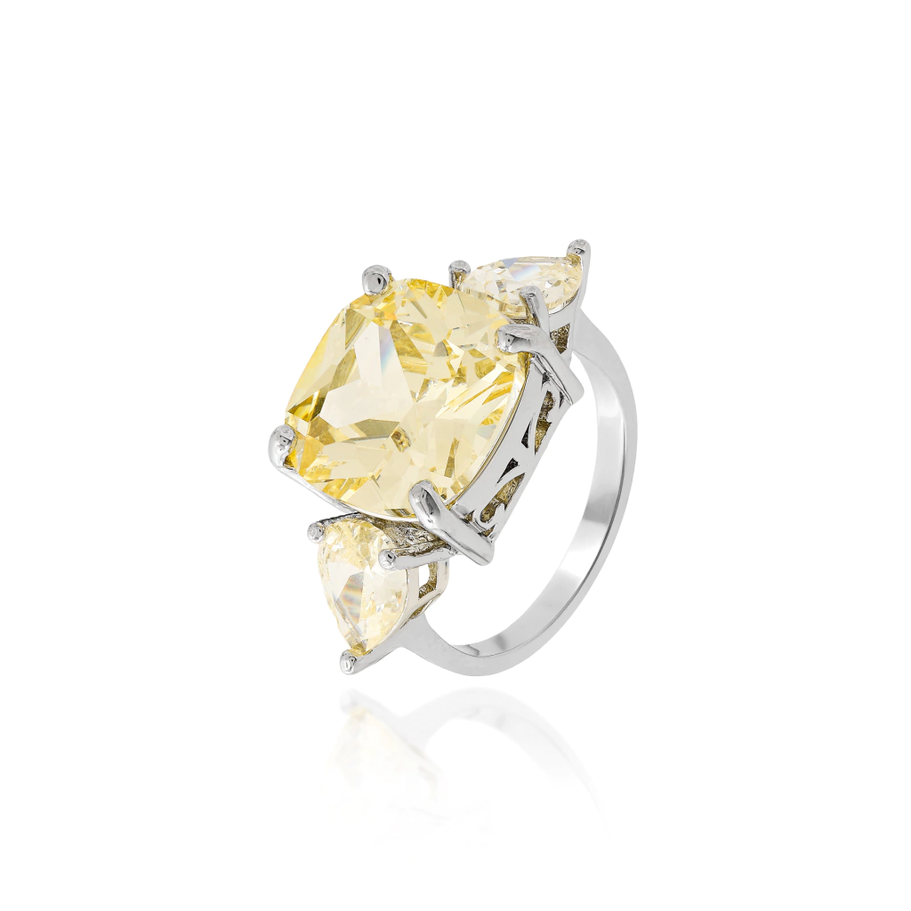 O Anel Oragon Fancy Yellow é uma joia impactante, criada para quem valoriza elegância, exclusividade e brilho intenso. Banhado em ródio branco de alta qualidade, seu design refinado apresenta uma magnífica zircônia fancy yellow com lapidação cushion no centro, que irradia sofisticação e personalidade.