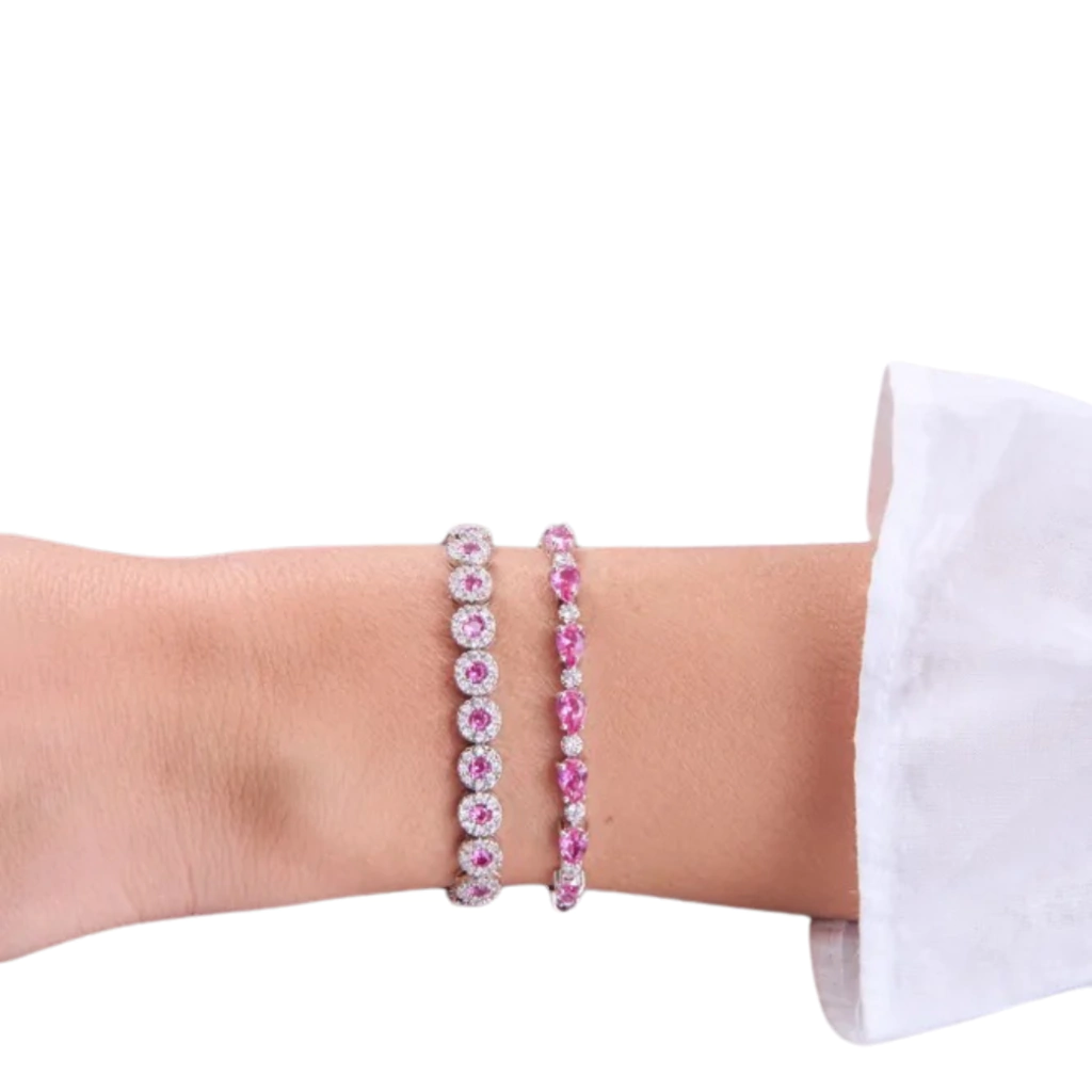 Clássica e cheia de charme, esta riviera é banhada em ródio branco e inteiramente cravejada com zircônias na tonalidade pink, que trazem um brilho encantador e vibrante à peça.